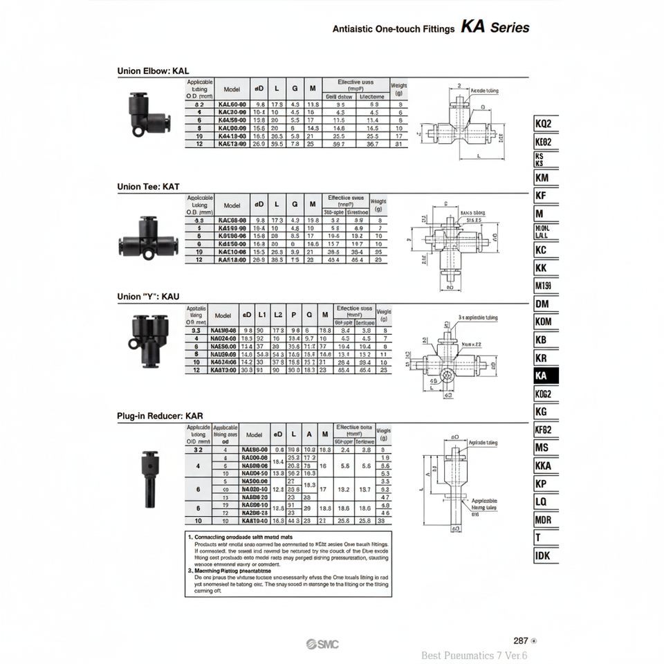 Raccords instantanés SMC Pneumatics KAR06-08 pièces pneumatiques