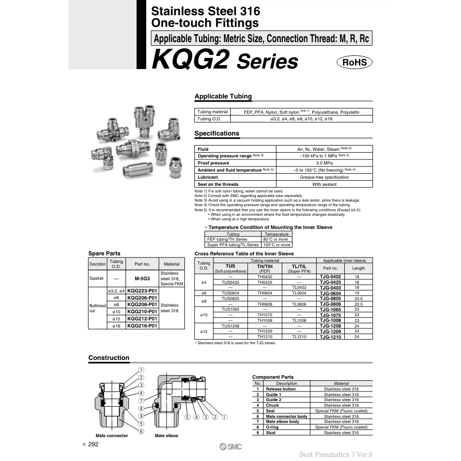 SMC Pneumatics One-Touch Acier inoxydable 316 Raccord KQG2H10-02S Pièces pneumatiques