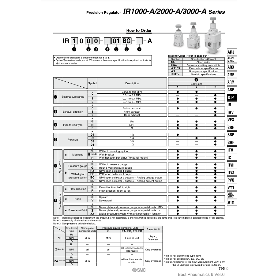 Modèle de régulateur de pression de précision SMC Pneumatics IR1020-F01-A
