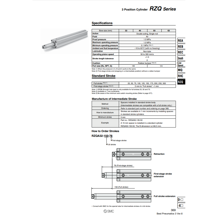 Pièces pneumatiques de cylindre de bouchon de RZQF32-140-75 pneumatique de SMC