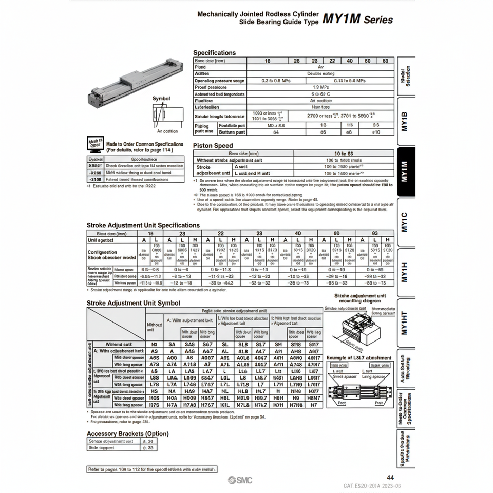 Catégorie de produit Cylindre sans tige pneumatique SMC MY1M16-430LS cylindres mécaniquement articulés