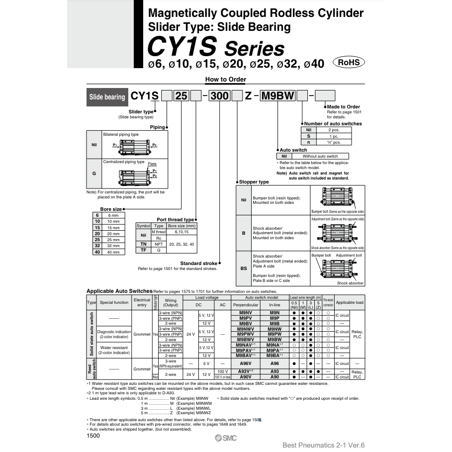 Modèle de cylindre sans tige pneumatique SMC CY1S20-175Z