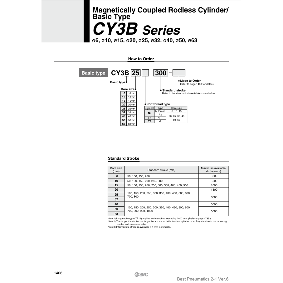 Modèle de cylindre sans tige pneumatique SMC CY3B32-250