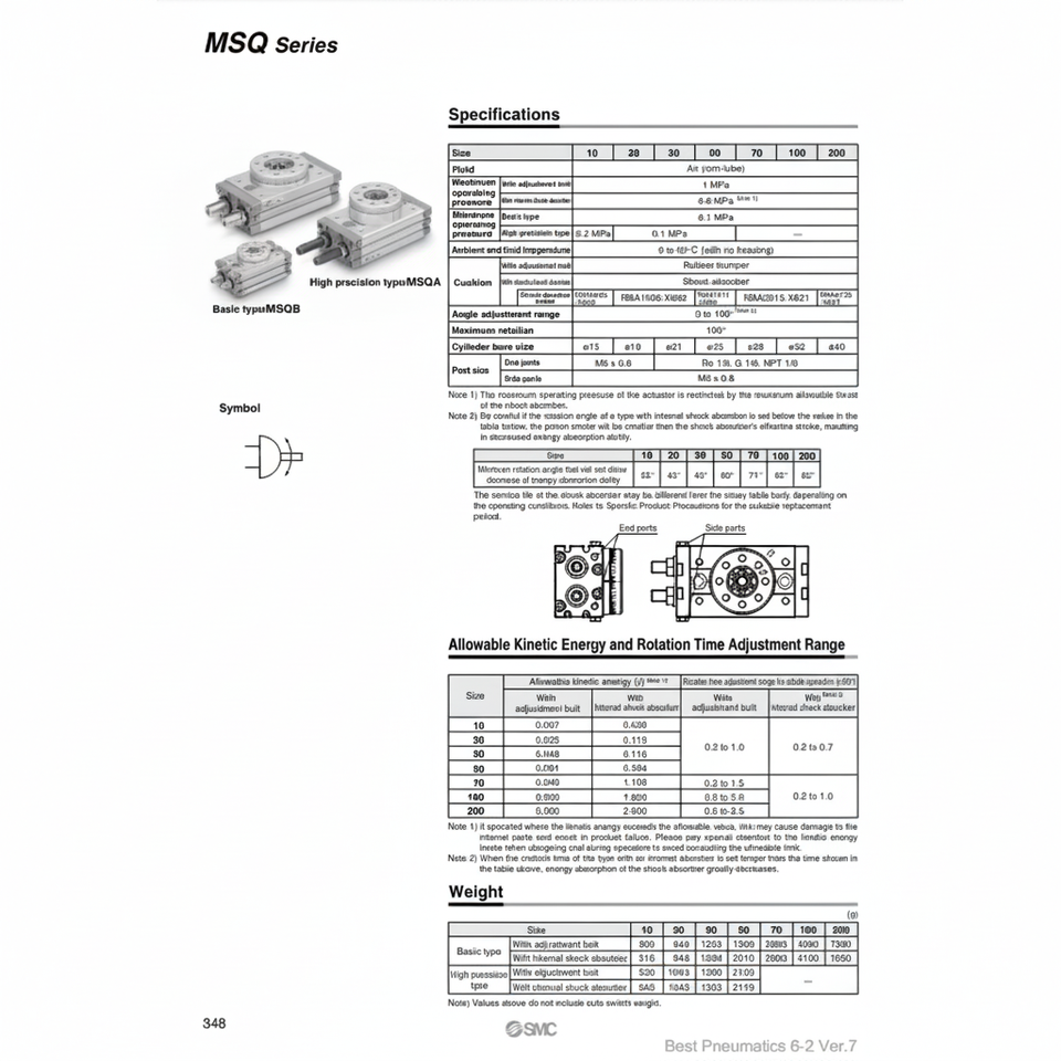 Table rotative pneumatique SMC modèle MSQA50A pièces pneumatiques