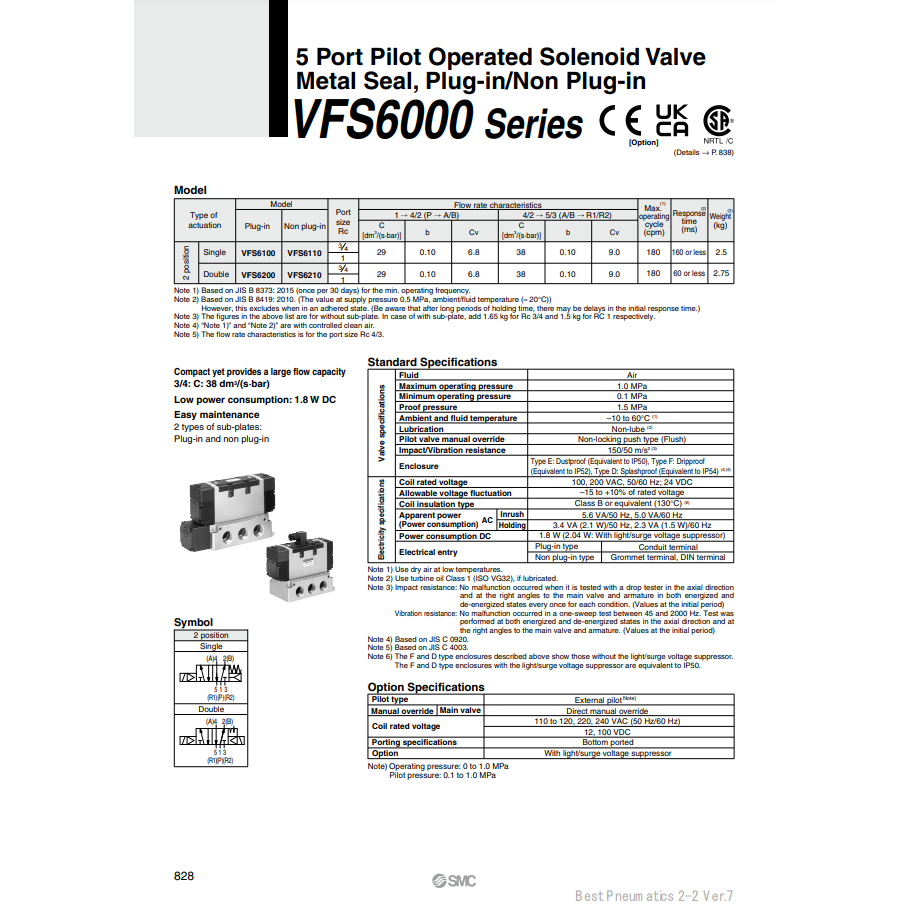 Vanne de commande d'électrovanne pneumatique SMC VFS6210-3DZ-10