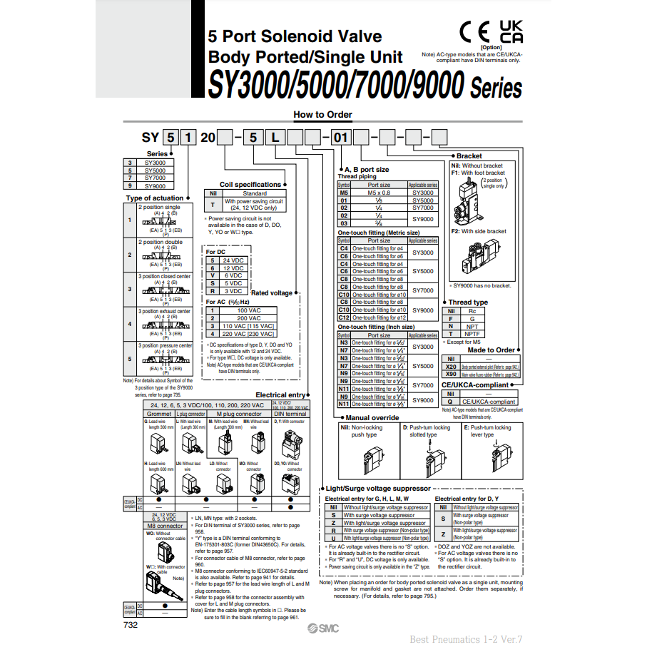 Vanne de commande d'électrovanne pneumatique SMC SY5220-5LN-01