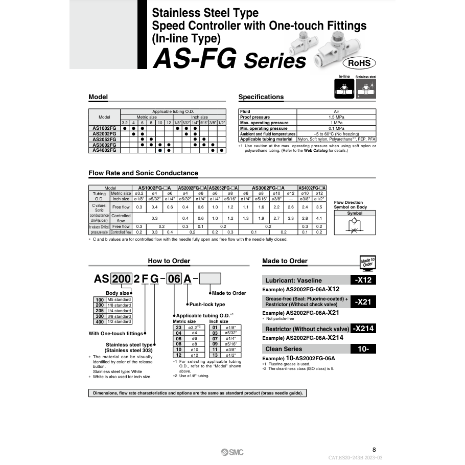 Contrôleur de vitesse pneumatique SMC AS1002FG-06A pièces pneumatiques