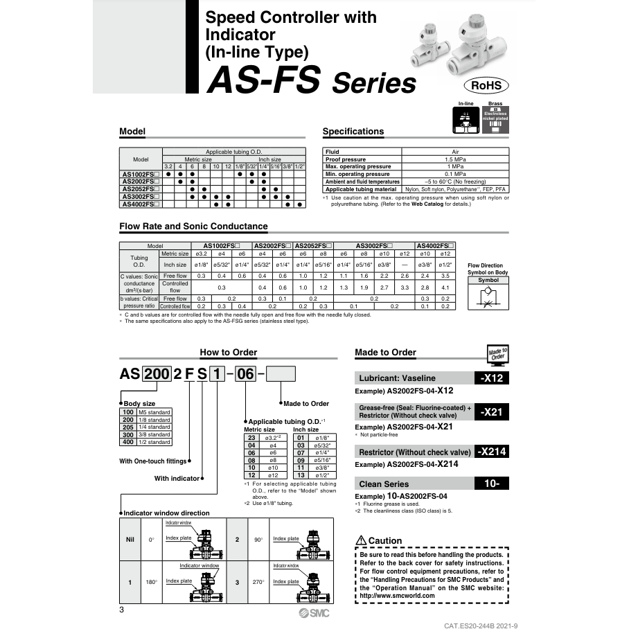 Contrôleur de vitesse pneumatique SMC AS1002FS1-06 pièce pneumatique