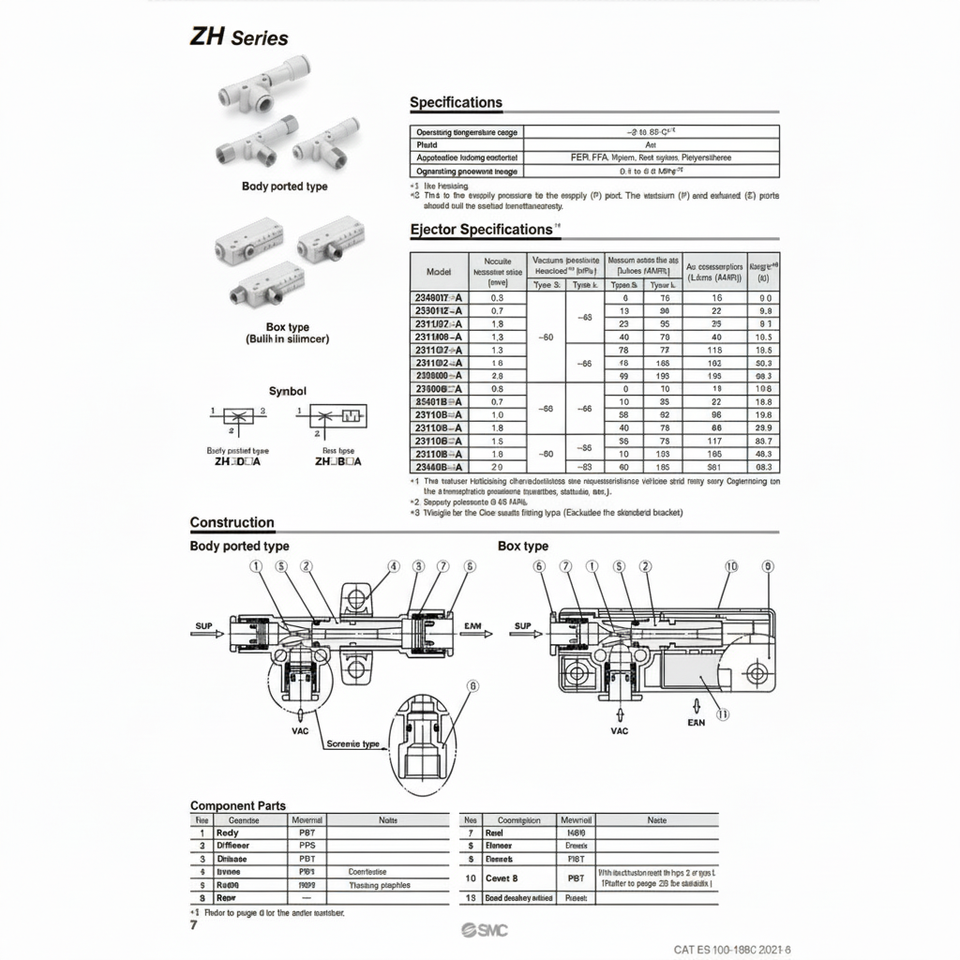 Modèle d'éjecteur de vide pneumatique SMC ZH07BSA-06-06 pièces pneumatiques