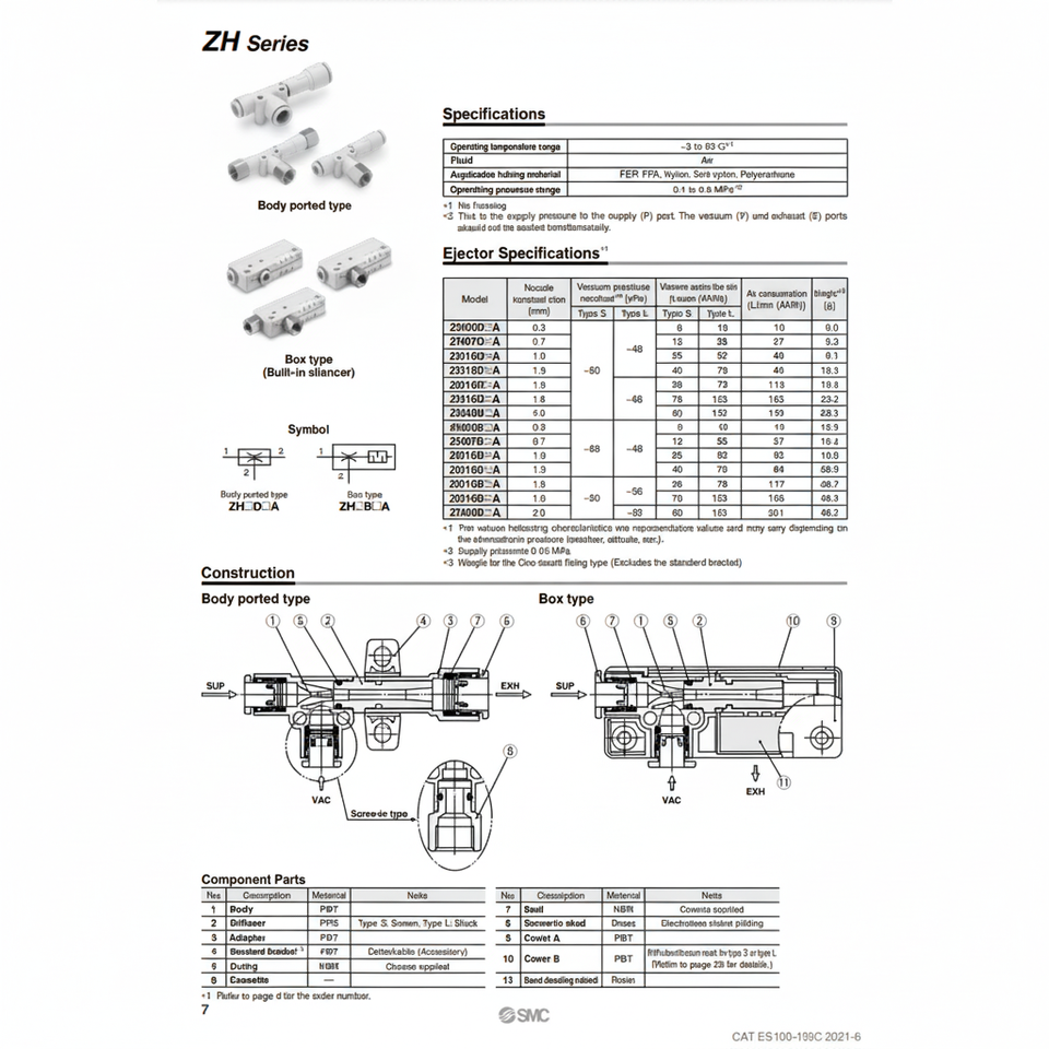 Modèle d'éjecteur de vide pneumatique SMC ZH13BSA-01-02 catégorie de produit élévateurs de vide