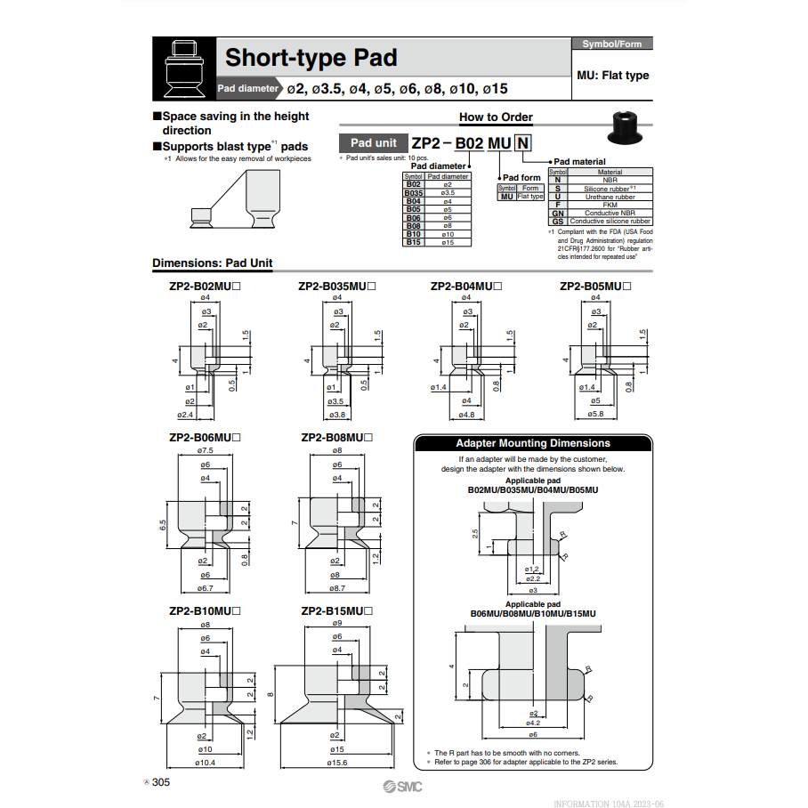 Modèle de coussin de vide pneumatique SMC ZP2-B08MUN pour pièces d'équipement de manutention