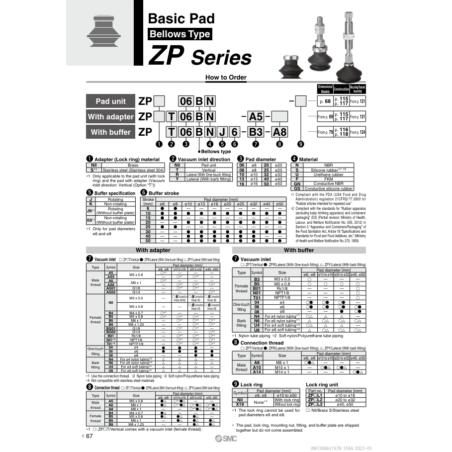Modèle de coussin de vide pneumatique SMC ZPT40BN-B01 pour pièces d'équipement de manutention