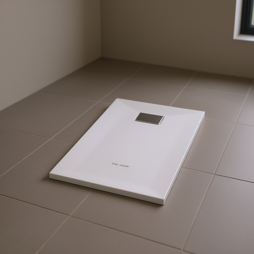 Base de douche SMC 39,4x31,5 pouces rectangulaire avec drain central, prête pour l'installation au sol