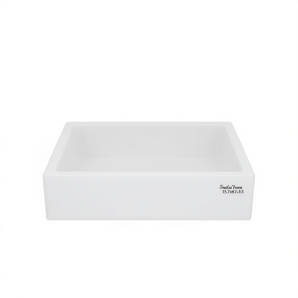 Lavabo rectangulaire blanc SMC 15,7x8,7x3,5 pouces, lavabo à poser, design minimaliste pour salle de bain
