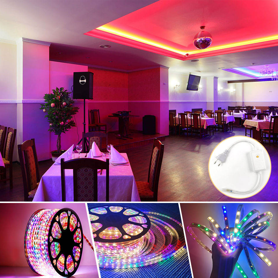 SMD2835 bande LED multicolore 2835 AC 220V 5 M ruban Led Flexible ruban 8 Mode contrôle EU adaptateur étanche bande LED