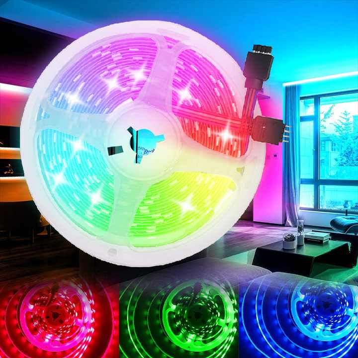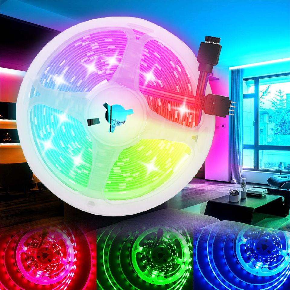 Bande lumineuse LED SMD5050 RGB 5M/bobine, étanche, multicolore, décoration de la maison, bande lumineuse flexible, DC 12V, ruban lumineux intelligent
