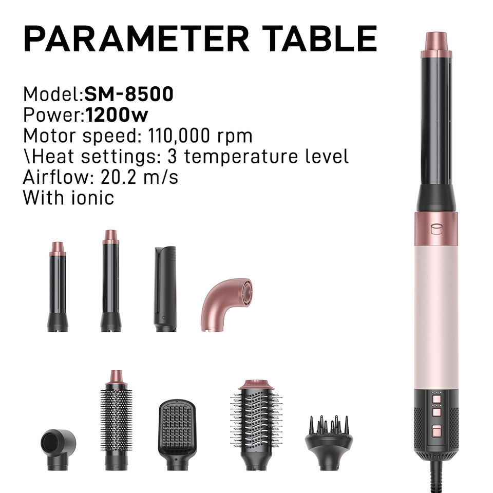 SMET Nouveau sèche-cheveux 8 en 1 à séchage rapide 1500W Brosse à air chaud 110000 tr/min Sèche-cheveux professionnel Boucleur électrique Lisseur
