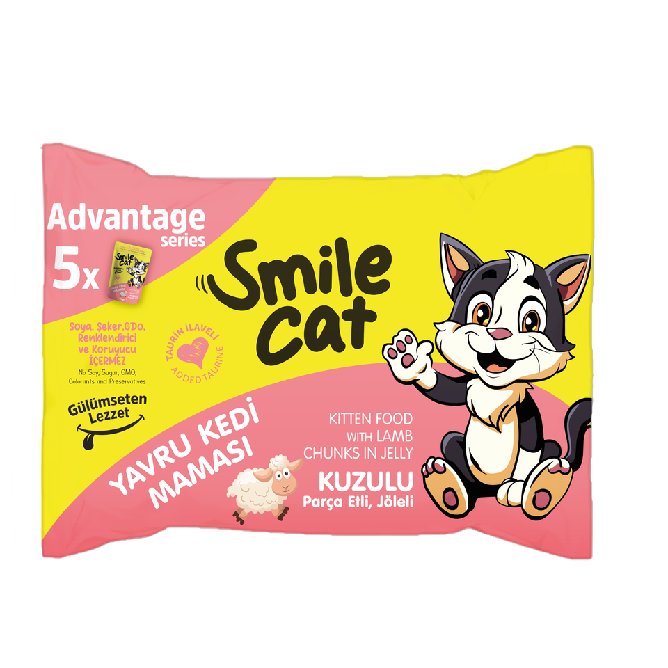 SMILE Kitten Wet Food Flowpack 85g 4+1 Advantage Series with Added Taurine Lamb Chunks in Jelly 12PCS (5 Boxes) No Soy Sugar GMO