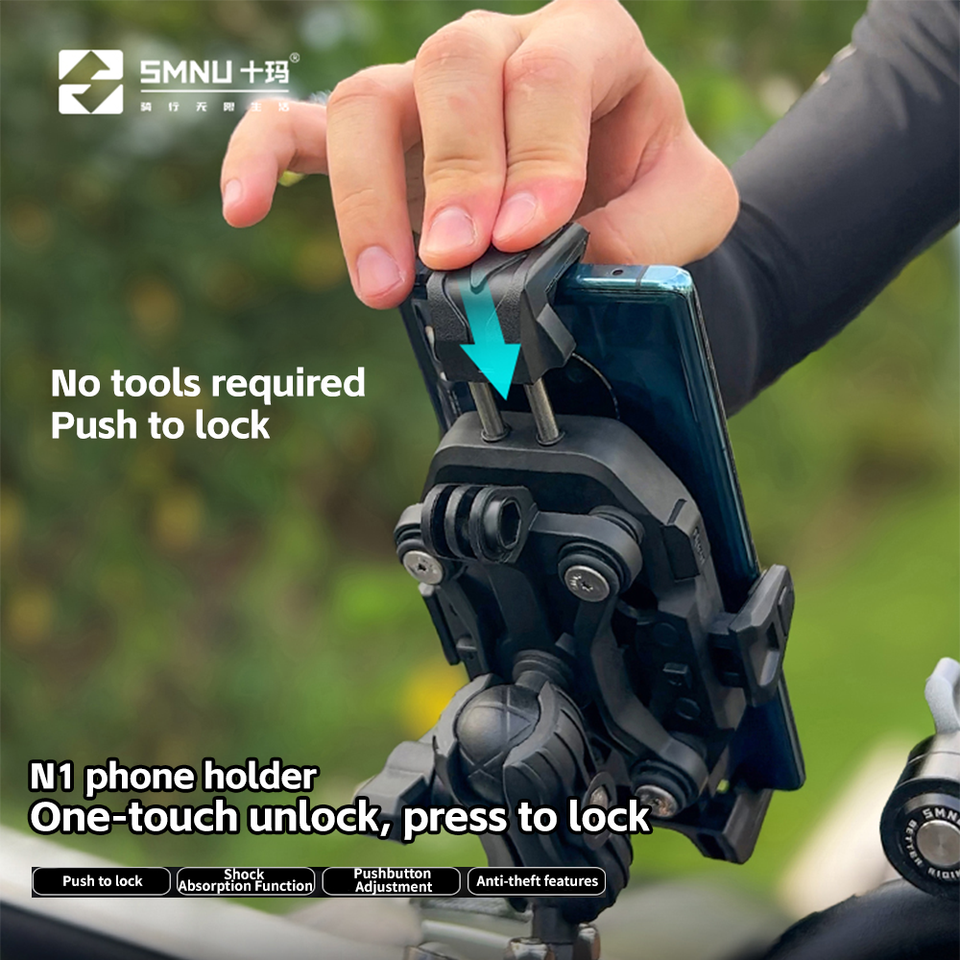 Support de téléphone portable SMNU à verrouillage à un clic, en alliage d'aluminium, antivol, double port de charge rapide, support de vélo et de moto, personnalisable