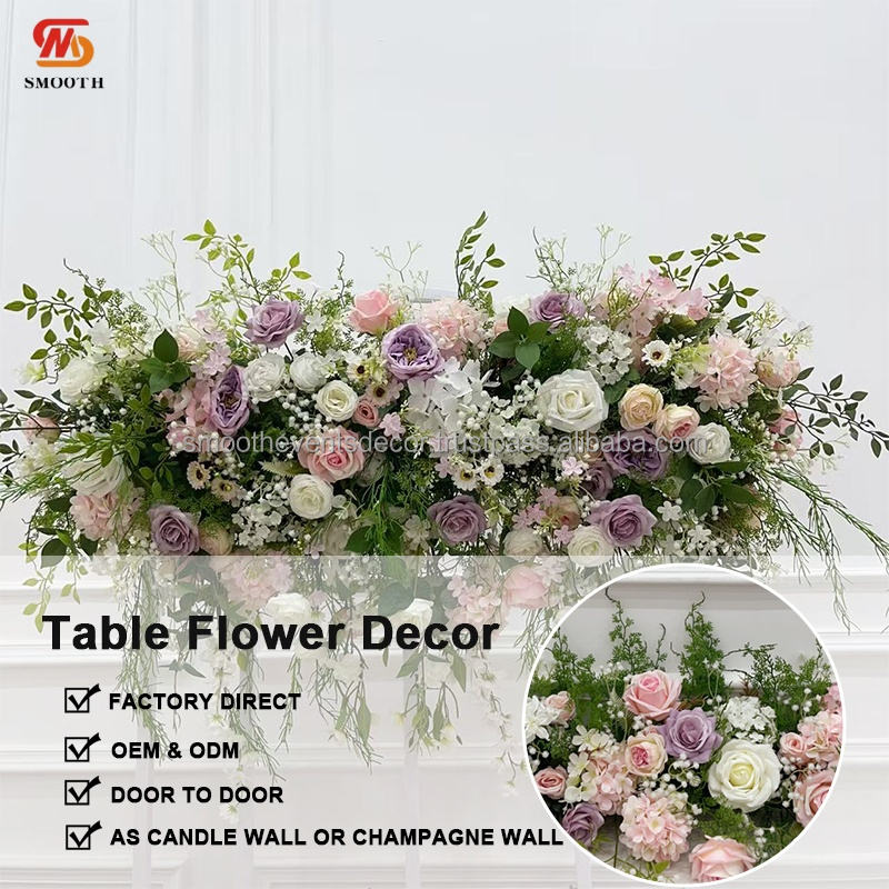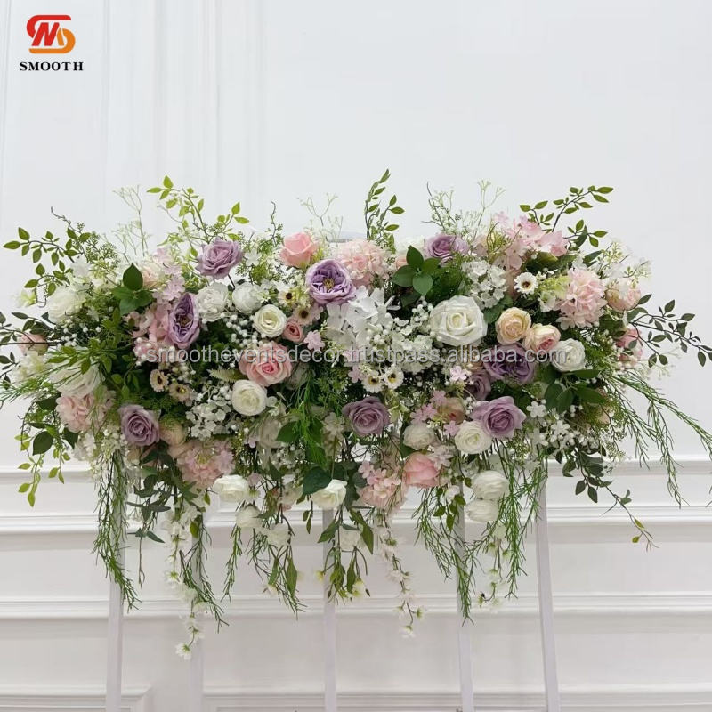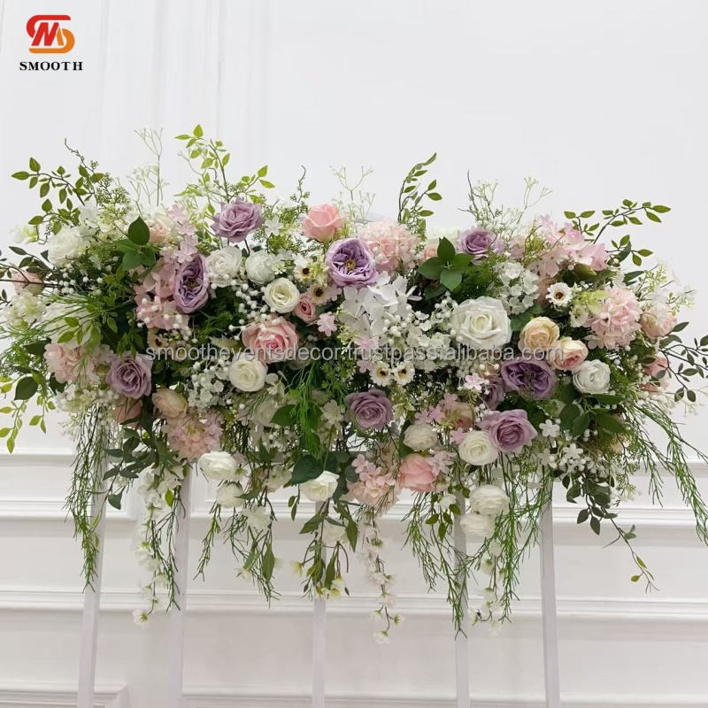 Coureur floral de fleur de plancher de Rose en soie blanche roseNom du produit