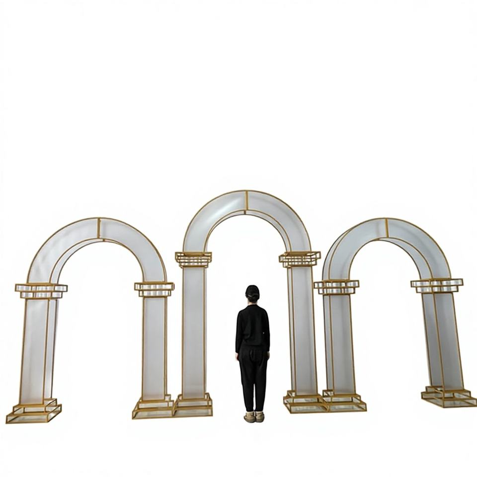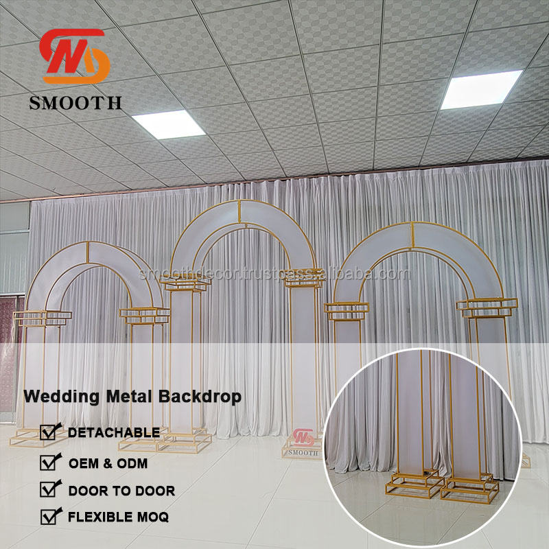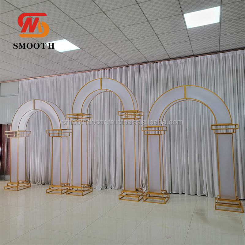 SMOOTH Ensemble de 3 pièces Arche de mariage rectangulaire en fer doré brillant avec design miroir pour toile de fond, décoration florale de cérémonie, taille personnalisable