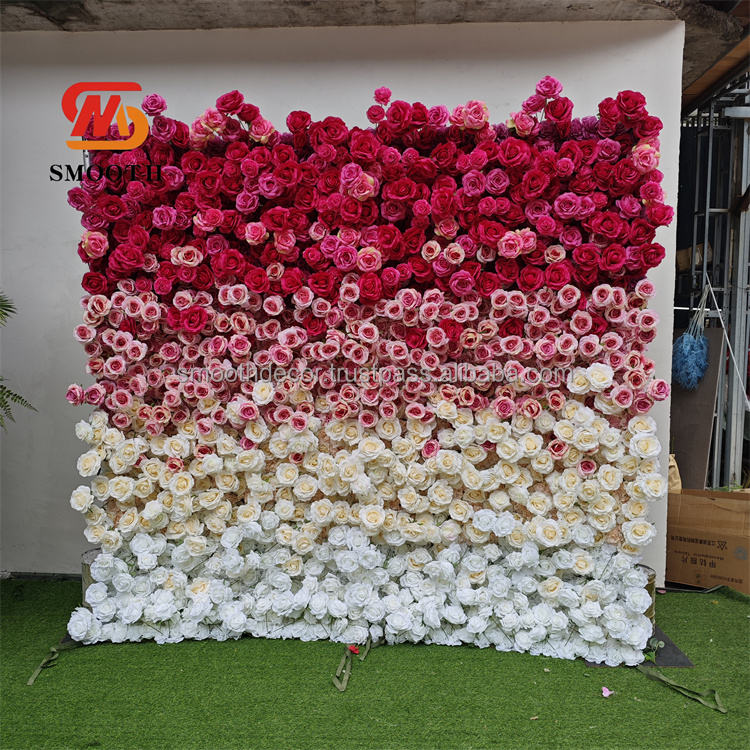 Product Name:5D Gradient Roll Up Fabric Artificial Red to White flower wall