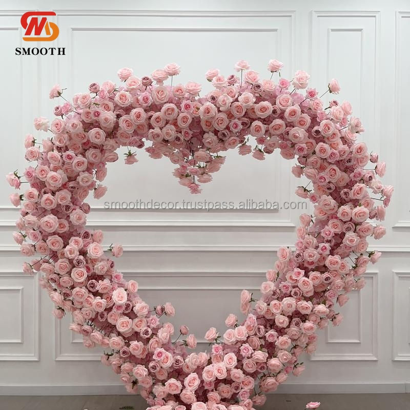 Arche en forme de cœur en soie artificielle lisse pour mariage avec toile de fond, taille 1,8-2,4 m, couleurs personnalisables