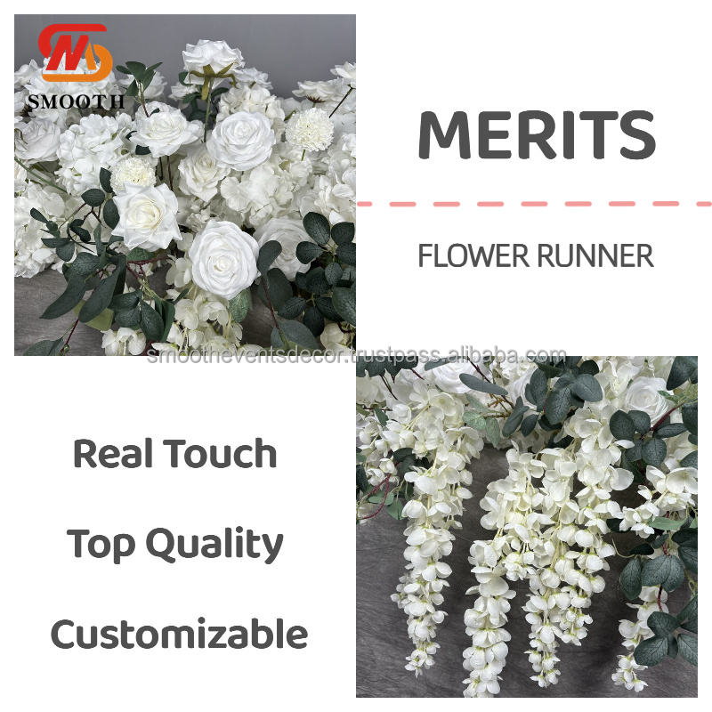 LISSE pas cher prix blanc verdure fleur coureur pièce maîtresse fleur arc décoration Floral coureur pour mariage décoration fleur