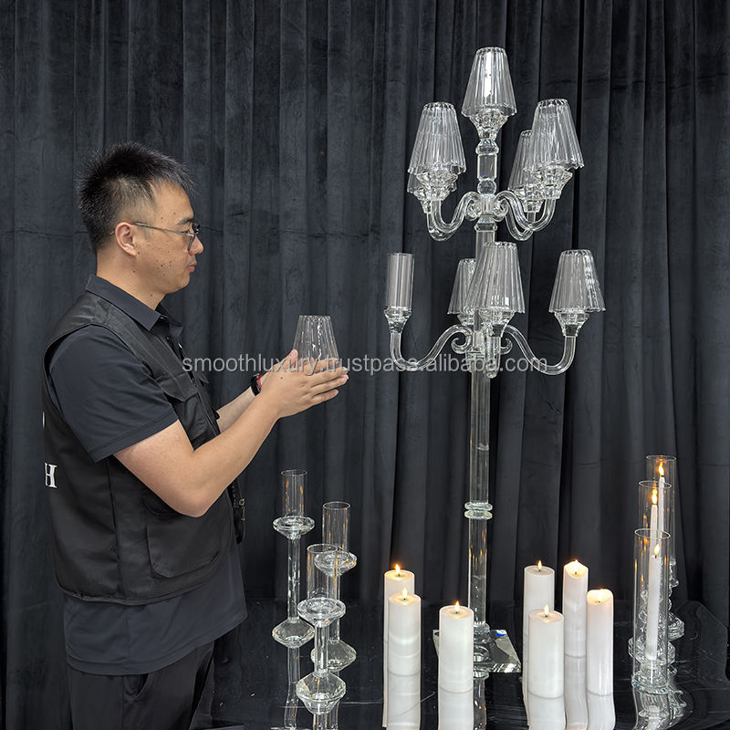 SMOOTH Clear Crystal Candelabra Wedding Centerpiece Crystal Individual Candle Holder for Weddings Table Decoration