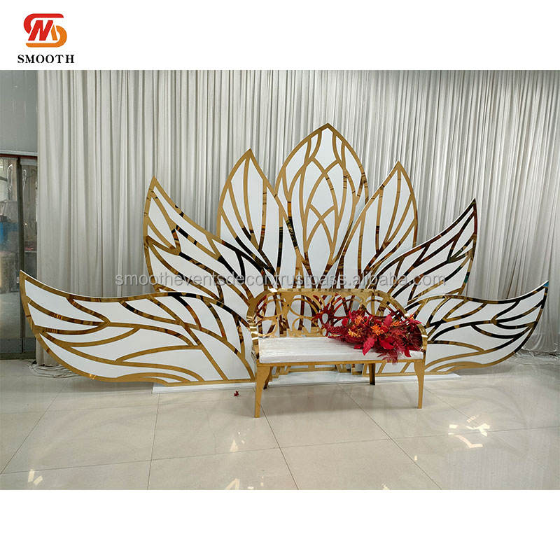 Toile de fond de lotus de mariage élégante de luxe personnalisée lisse toile de fond moderne en métal doré pour la décoration de mariage
