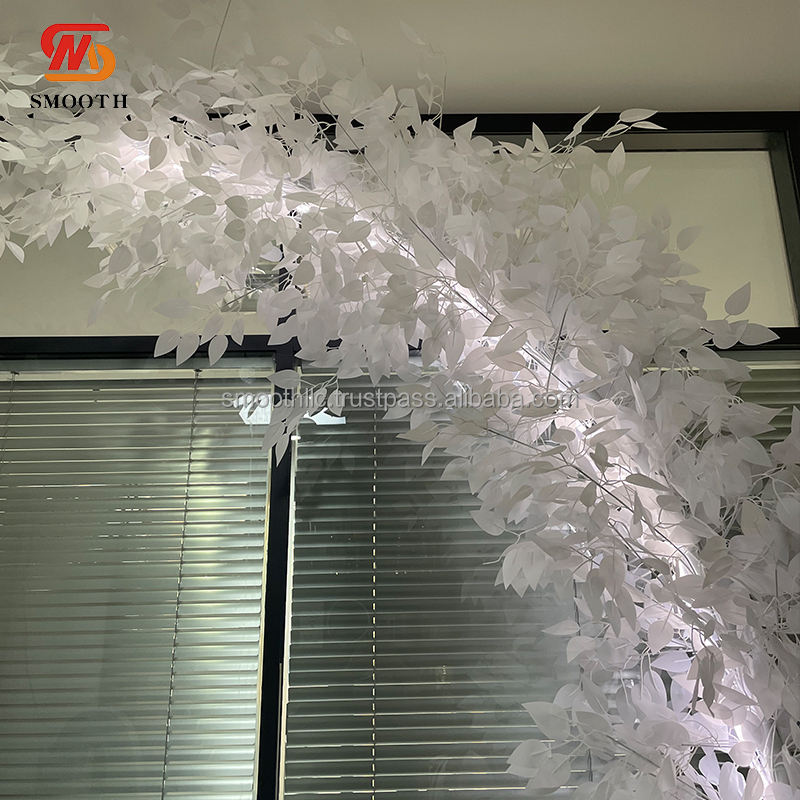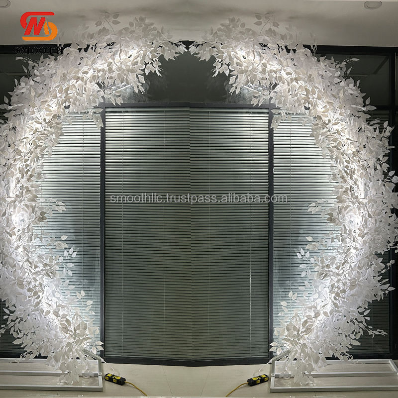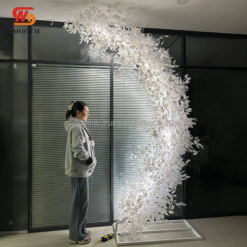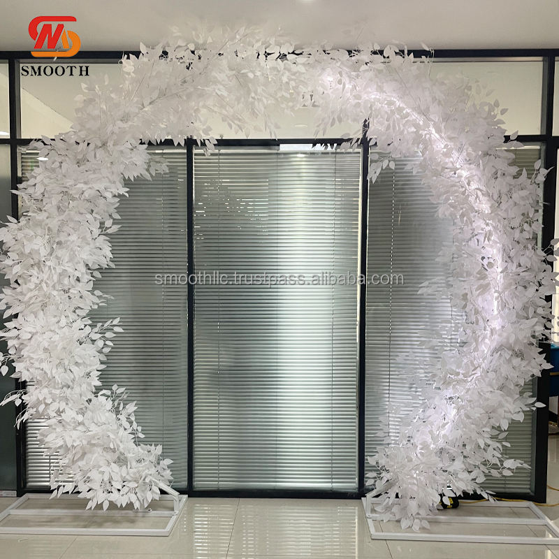 Support en fer blanc semi-circulaire personnalisé SMOOTH pour allée de mariage, arche d'entrée avec lumière LED, feuilles de banian