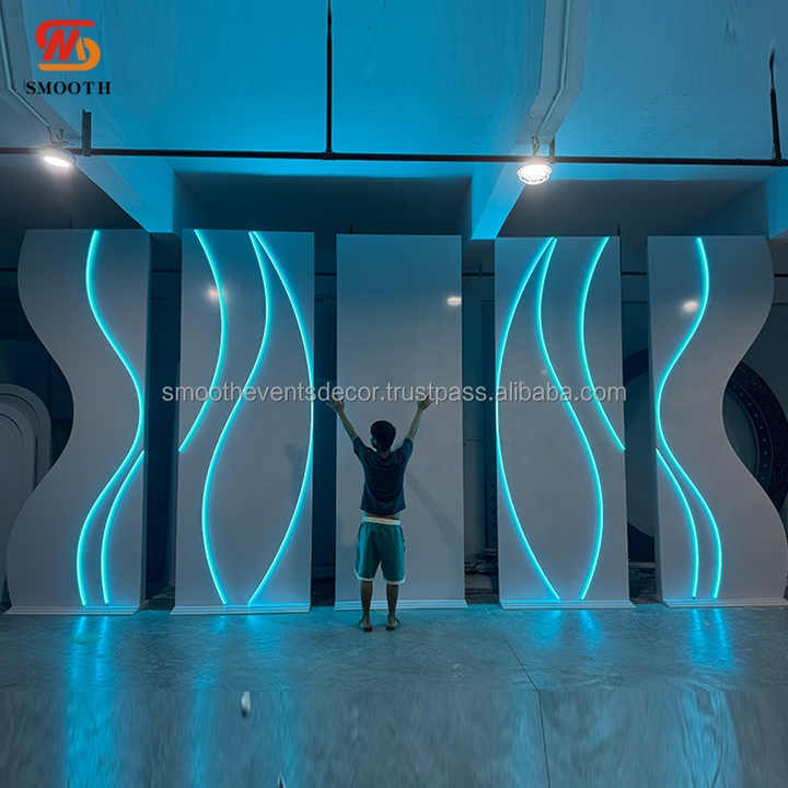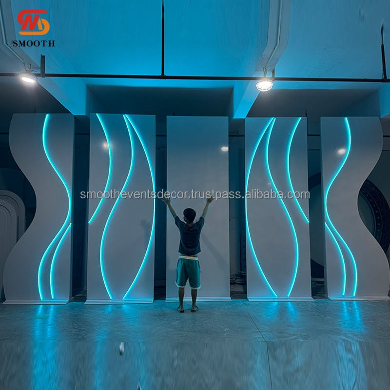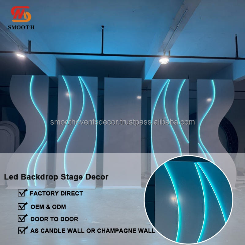 Support de toile de fond en PVC bleu avec bande lumineuse LED, directement de l'usine, pour décoration de mariage et événements