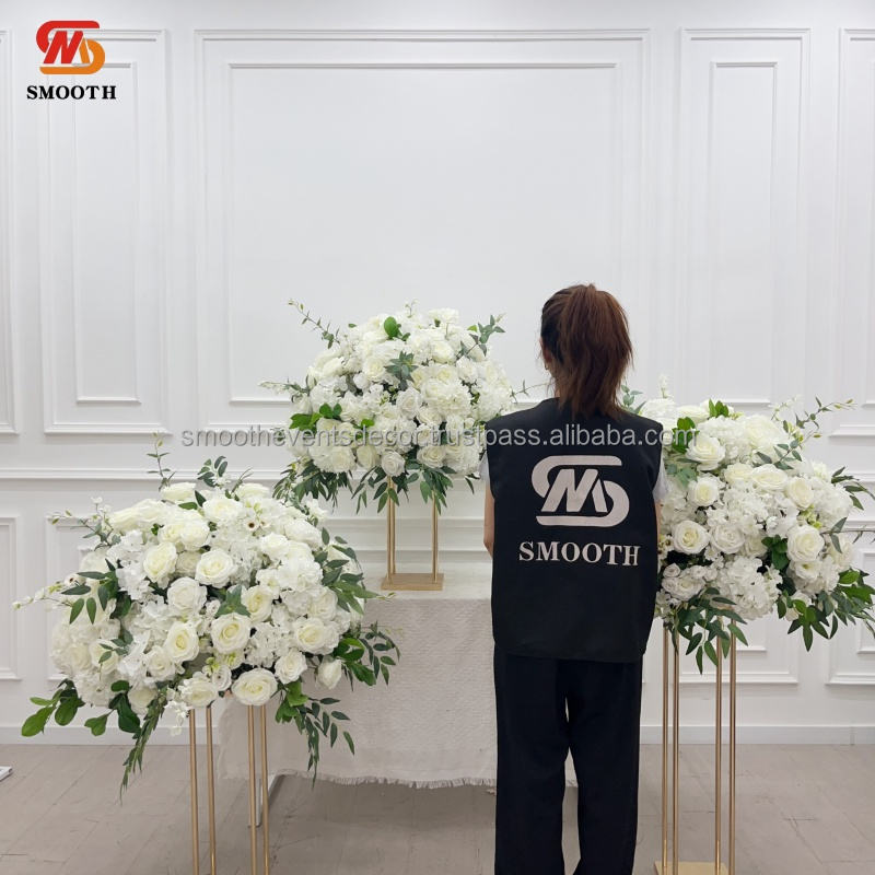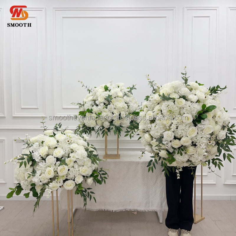 Personnalisation directe d'usine lisse boule de fleurs artificielles en soie blanche centres de table de mariage pour la décoration d'événements