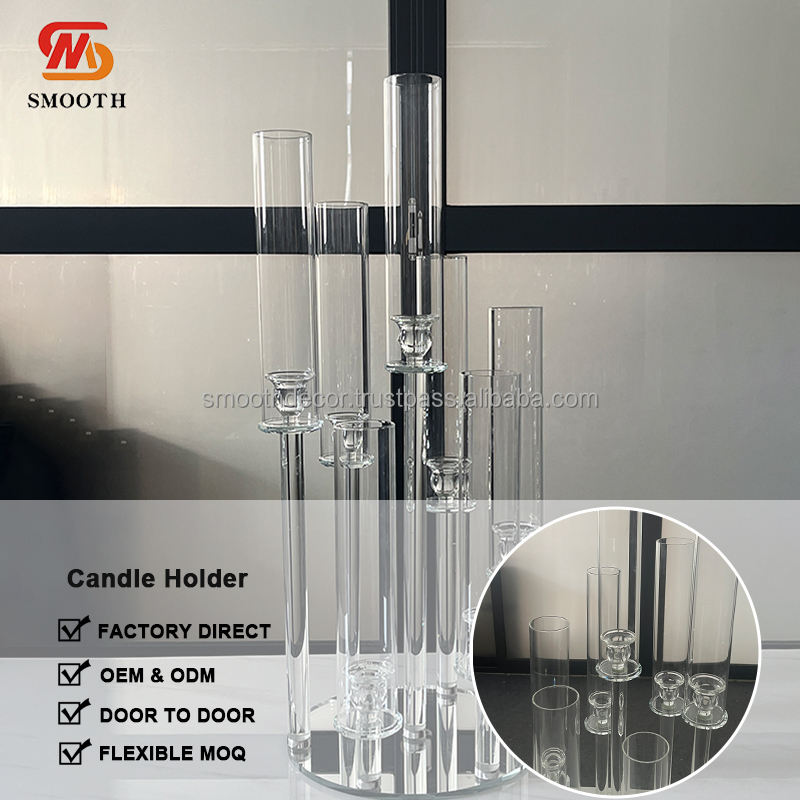 Bougeoir en verre direct d'usine lisse clair 7 bras bougeoir en cristal pour la décoration de mariage