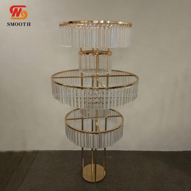 Support à fleurs en métal doré à 5 niveaux avec cristaux suspendus, fabrication d'usine, centre de table pour mariage