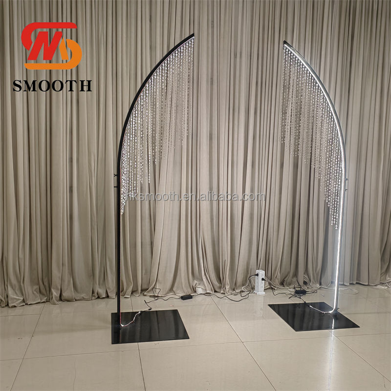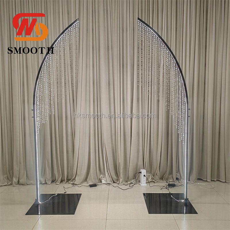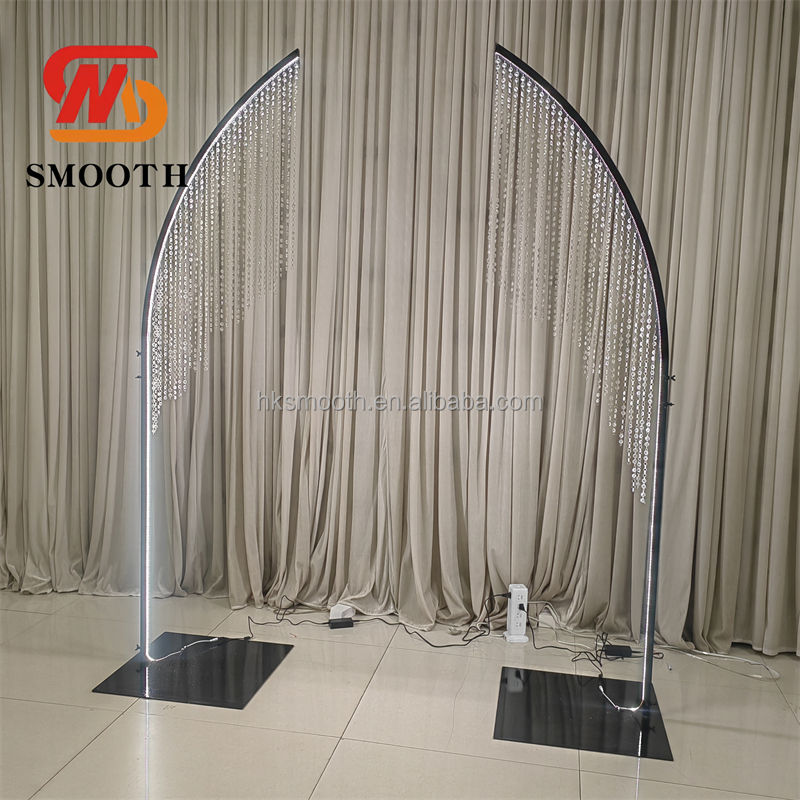 Arche lumineuse LED en métal pour entrée de mariage, support de toile de fond, rideaux de perles, toile de fond pour allée de cérémonie