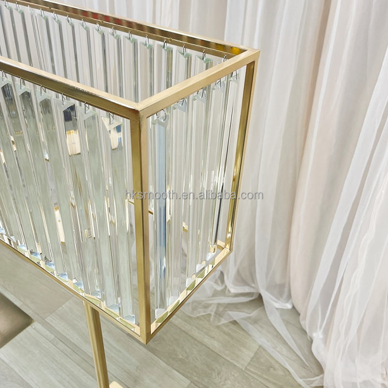 Support de fleurs de mariage en cristal doré lisse, centre de table rectangulaire pour la décoration de fête de mariage