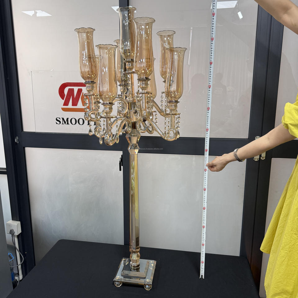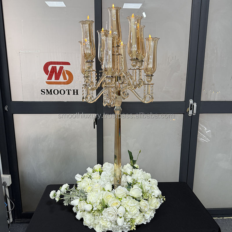 Bougeoir de table de mariage en cristal de verre doré lisse décoration candélabre de mariage pièce maîtresse pour accessoires d'événement