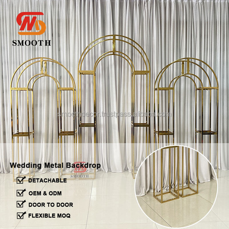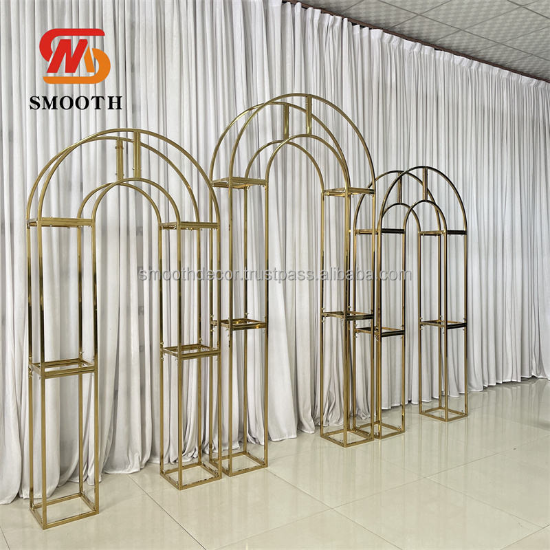 Support de toile de fond de mariage en acier inoxydable plaqué or, design géométrique rectangulaire lisse avec miroir, 100x220cm/200cm, décoration de mariage