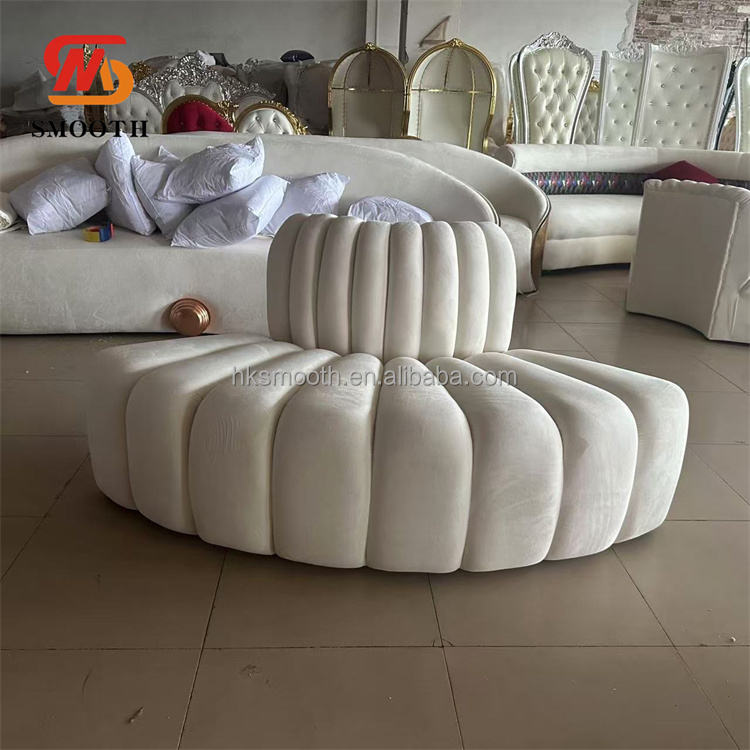 Nom du produit:Ensemble de canapés ronds pour décoration de mariage en extérieur, canapé en velours blanc