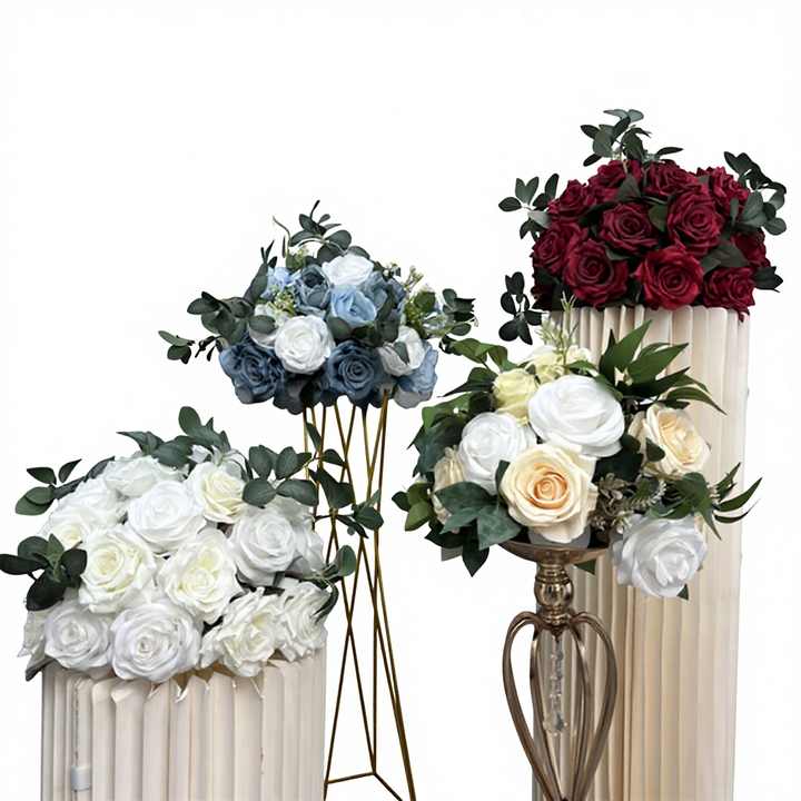 SMOOTH Promotion Boule de fleurs artificielles en soie roses rouges, bleues, jaunes pour centre de table de mariage, taille personnalisable, design asymétrique fragmenté