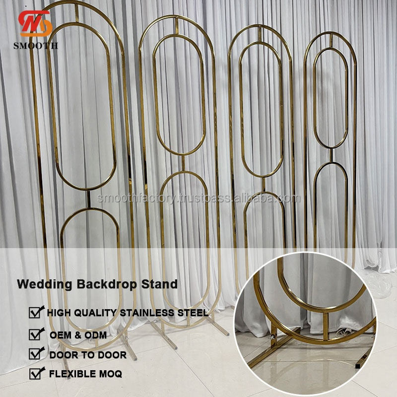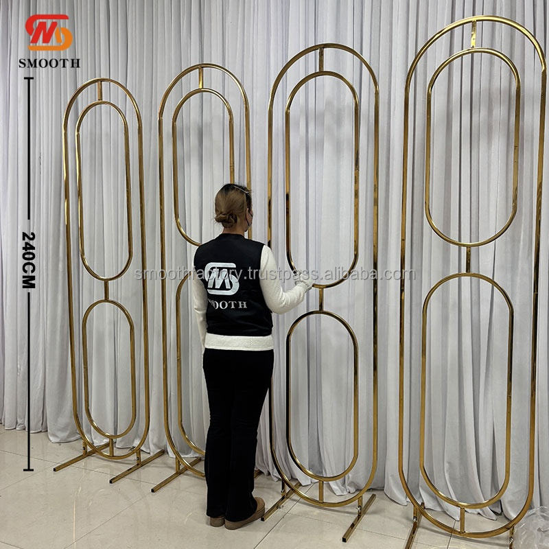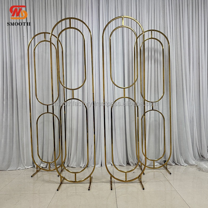 Support de toile de fond ovale en or de style indien lisse, écran métallique pour la décoration d'événements de mariage en plein air