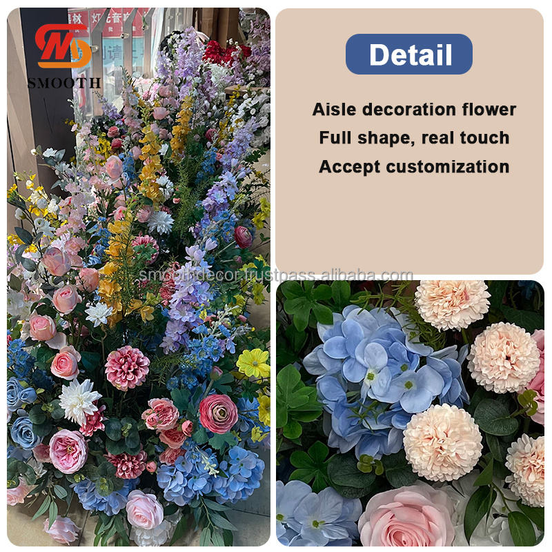 LISSE grand mariage événements toile de fond décoration bleu fleur rangées été fleur coureur pour mariage