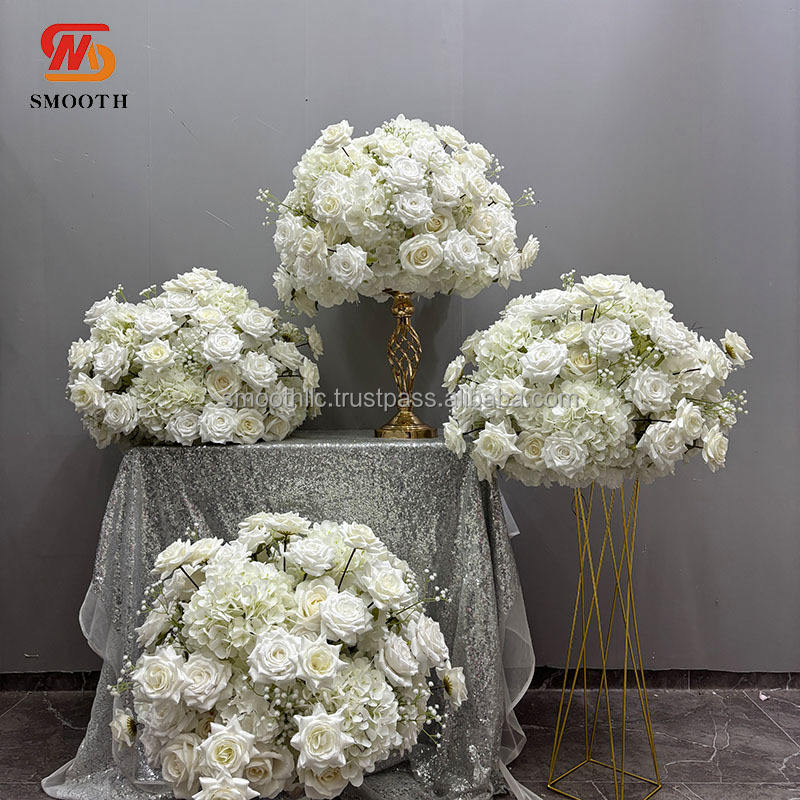 Boule de fleurs de luxe SMOOTH, grande hydrangea rose, centre de table floral blanc pour décoration de mariage