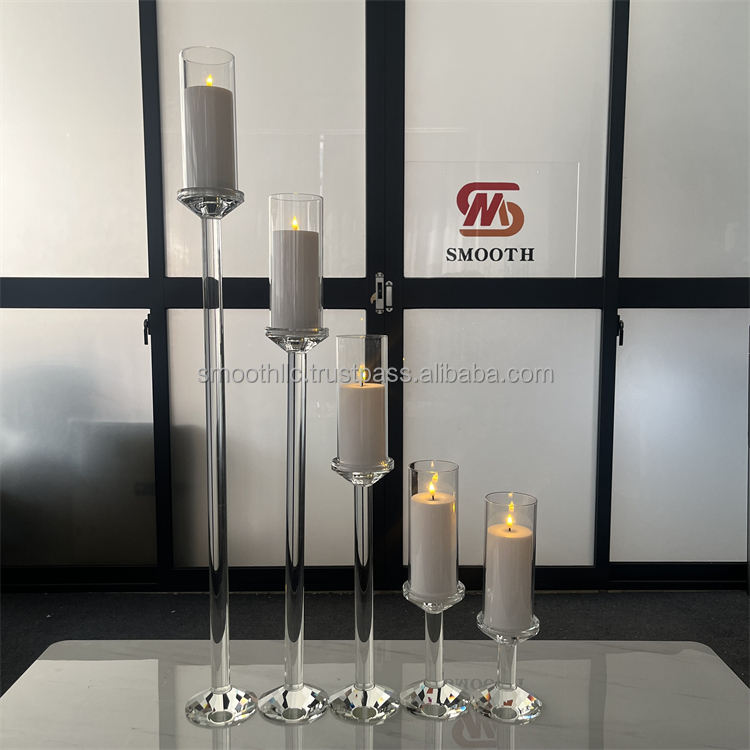 Centre de table de luxe lisse en cristal, bougeoir en verre transparent, candélabre en cristal, support de bougie en cristal