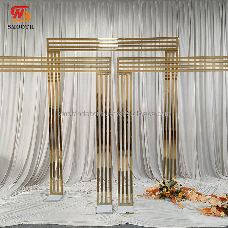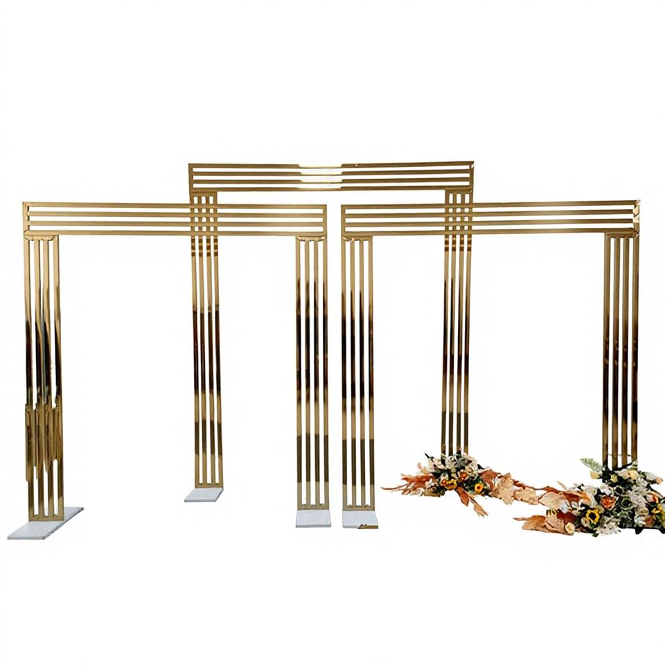 Support de fleurs rectangulaire géométrique en acier inoxydable doré, design miroir, pour décorations de mariage et fournitures de fête