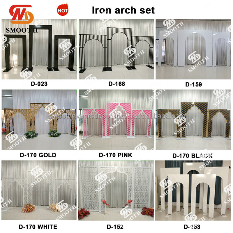 Cadre d'arche de fleurs, accessoires de mariage dorés, fond de scèneNom du produit