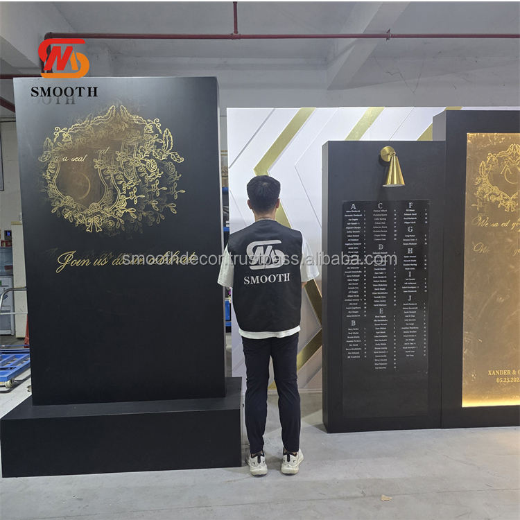 Panneau de fond carré en acrylique noir, lisse, durable, moderne, luxueux, personnalisable, pour décoration de mariage, panneau d'accueil