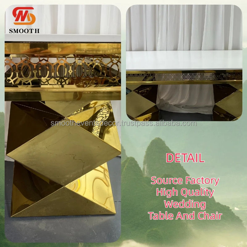 Table de mariage élégante et chic en acier inoxydable doré pour hôtel de luxe, restaurant, table à manger
