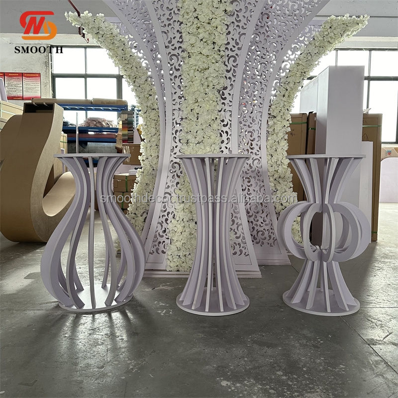 Nouvelle conception lisse, découpe au laser, grande toile de fond de scène de mariage blanche avec des fleurs